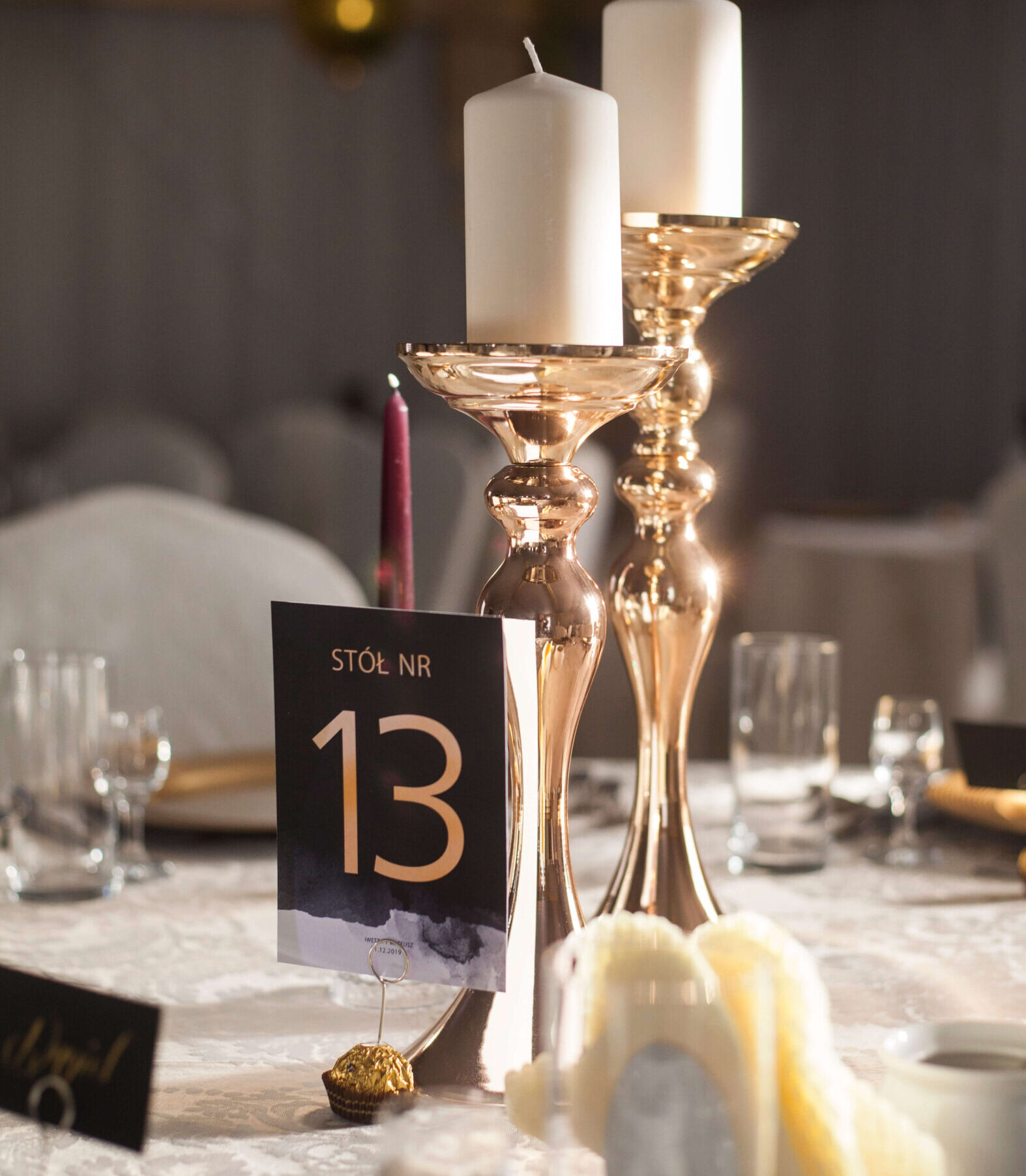 Mogą być również dowolnym znakiem informacyjnym na sali, jak np. „candy bar”, „wiejski stół”, „stolik dzieci” i wiele innych.