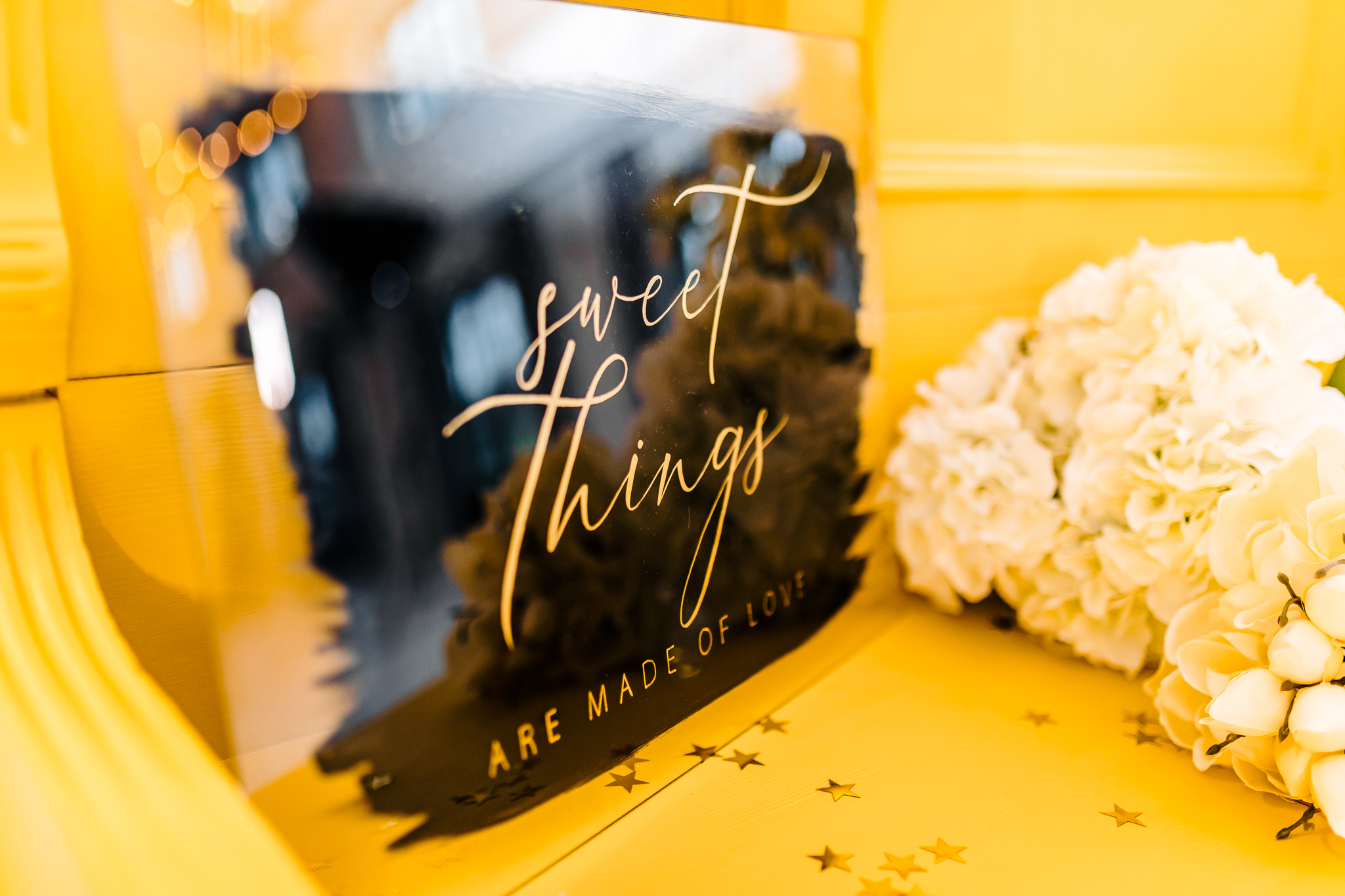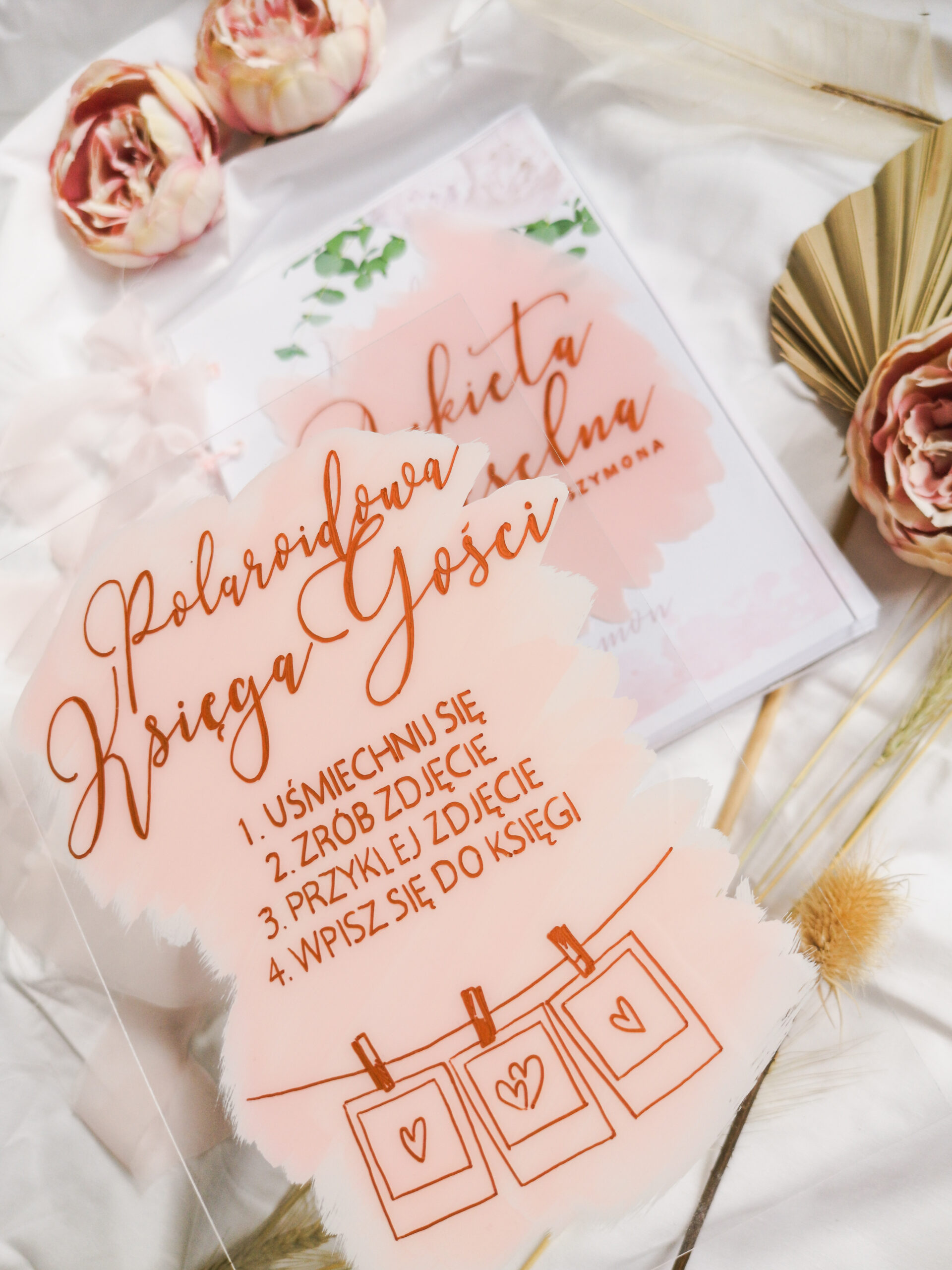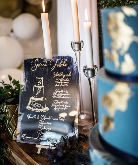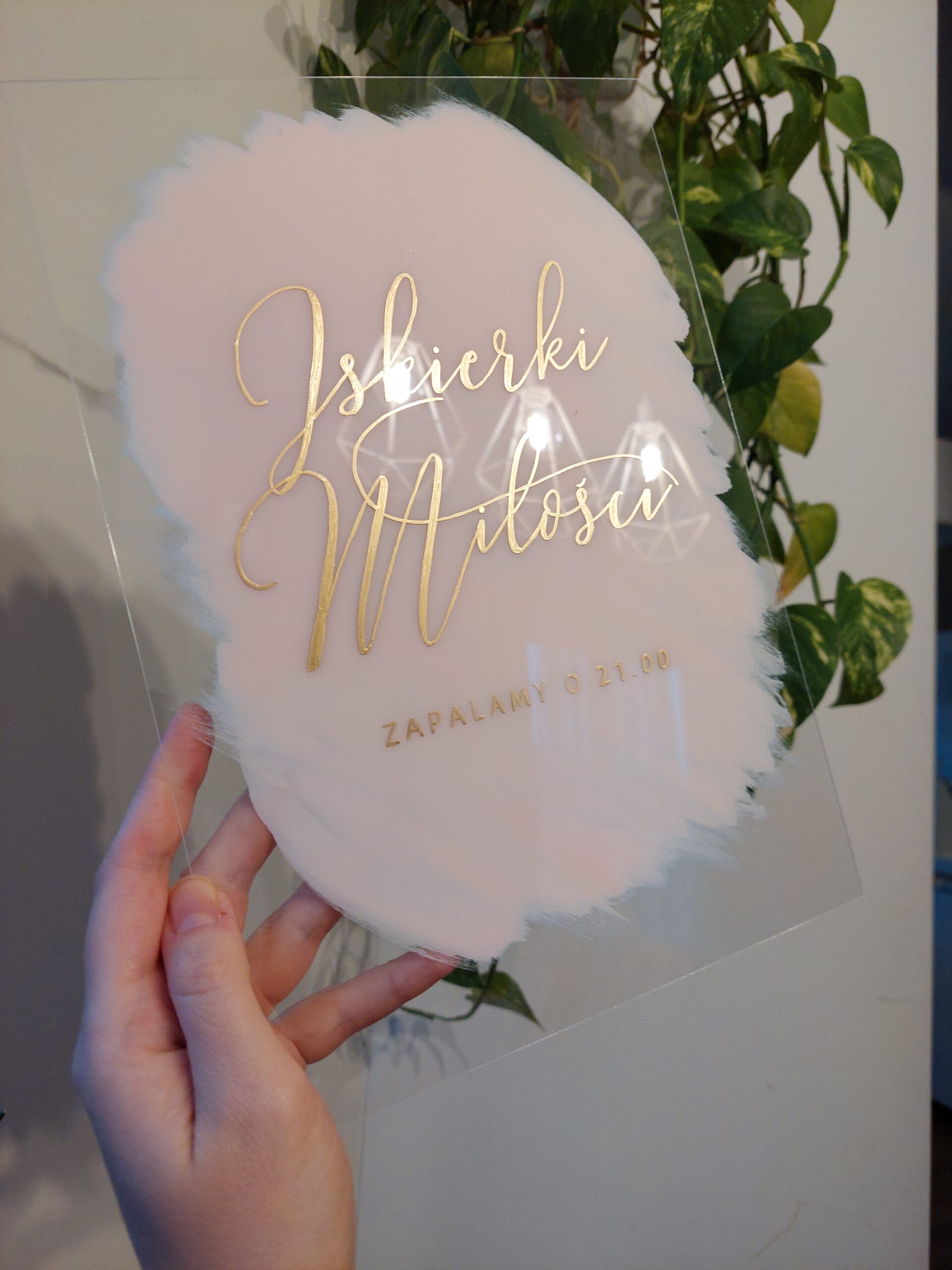 Tablica może mieć dowolny napis, być dużym numerem stołu, napisem „stół Państwa Młodych”, może być planem wesela, opisem do księgi gości i td. Ogranicza Was tylko wyobraźnia.